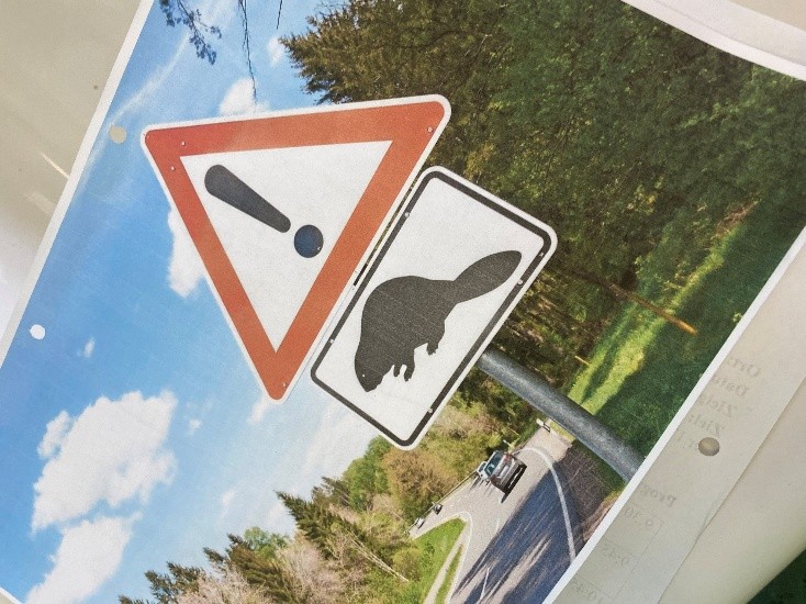 Zunächst konnten die Kinder einen ausgestopften Biber, ein Biberfell, ein Zahnmodell und einige andere veranschaulichende Dinge begutachten. Die Erkenntnis des Tages war dabei für viele: der Biber ist richtig groß! Er ist das größte Nagetier Europas! Außerdem benutzt er seinen Schwanz, auch Kelle genannt, nicht nur zum Balancieren und Rudern, sondern er schlägt auch damit Alarm! Danach konnten wir die imposanten Bauwerke der Tiere bestaunen und stießen während der kleinen Wanderung rund um Reinsfeld immer wieder auf Spuren des Baumeisters. Dabei konnten viele interessante Fragen geklärt werden, z.B.: